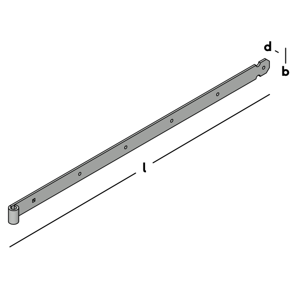 Ladenband gerade aus verzinktem Stahl mit Vierkantlöchern. Für Kloben Ø16 mm.