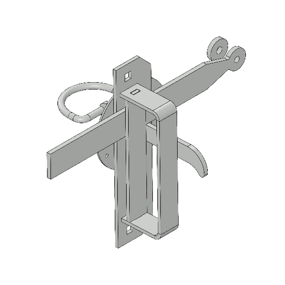 Kompletter Verschluss für eine Hoftür, ein Tor oder eine Gartentür mit einem Griff auf der einen Seite und einem Riegel auf der anderen Seite.