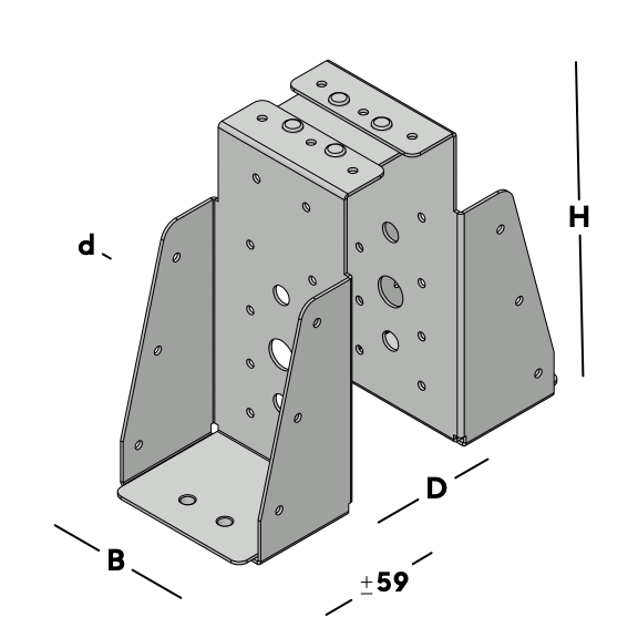 Doppelter Balkenträger, der über einen Hauptbalken (Nussbalken) gehängt und dann an der Rückseite jedes Balkenträgers auf beiden Seiten befestigt wird. Anschließend wird auf jeder Seite ein Querträger eingesetzt, der durch Löcher in der Seite des Balkenträgers geführt wird.