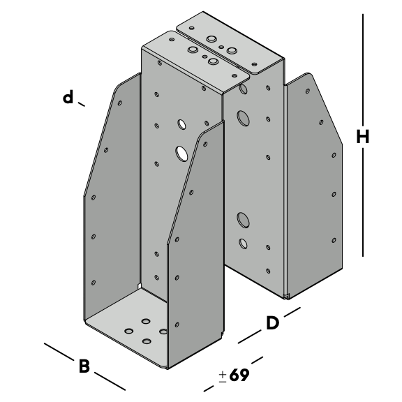 Doppelter Balkenträger, der über einen Hauptbalken (Nussbalken) gehängt und dann an der Rückseite jedes Balkenträgers auf beiden Seiten befestigt wird. Anschließend wird auf jeder Seite ein Querträger eingesetzt, der durch Löcher in der Seite des Balkenträgers geführt wird.