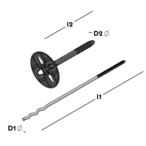 UNI Flexdübel System bestehend aus einem Drahtanker mit Einschlaggewinde und Welle und einem UNI Flexdübel. Zur Verbindung einer Hintermauerschale aus Porenbeton, Kalksandstein oder Beton mittels Dübel und einer Vormauerschale in Normalmörtel. Geeignet für alle gänigen Dämmstoffe. Mit allgem. Bauartgenehmigung.