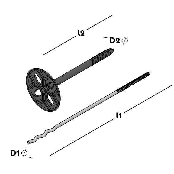 UNI Flexdübel System bestehend aus einem Drahtanker mit Einschlaggewinde und Welle und einem UNI Flexdübel. Zur Verbindung einer Hintermauerschale aus Porenbeton, Kalksandstein oder Beton mittels Dübel und einer Vormauerschale in Normalmörtel. Geeignet für alle gänigen Dämmstoffe. Mit allgem. Bauartgenehmigung.