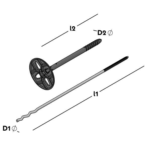 UNI Flexdübel System bestehend aus einem Drahtanker mit Einschlaggewinde und Welle und einem UNI Flexdübel. Zur Verbindung einer Hintermauerschale aus Porenbeton, Kalksandstein oder Beton mittels Dübel und einer Vormauerschale in Normalmörtel. Geeignet für alle gänigen Dämmstoffe. Mit allgem. Bauartgenehmigung.