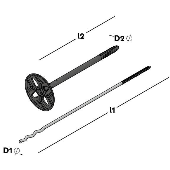 UNI Flexdübel System bestehend aus einem Drahtanker mit Einschlaggewinde und Welle und einem UNI Flexdübel. Zur Verbindung einer Hintermauerschale aus Porenbeton, Kalksandstein oder Beton mittels Dübel und einer Vormauerschale in Normalmörtel. Geeignet für alle gänigen Dämmstoffe. Mit allgem. Bauartgenehmigung.