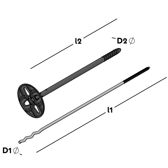 UNI Flexdübel System bestehend aus einem Drahtanker mit Einschlaggewinde und Welle und einem UNI Flexdübel. Zur Verbindung einer Hintermauerschale aus Porenbeton, Kalksandstein oder Beton mittels Dübel und einer Vormauerschale in Normalmörtel. Geeignet für alle gänigen Dämmstoffe. Mit allgem. Bauartgenehmigung.