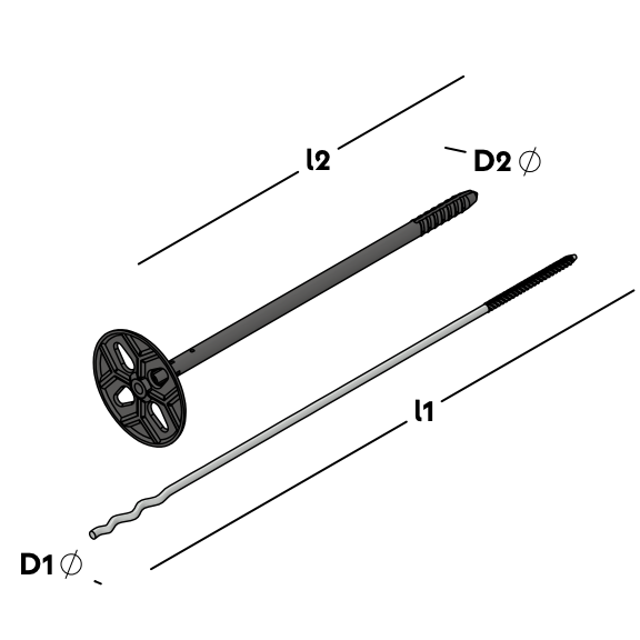 UNI Flexdübel System bestehend aus einem Drahtanker mit Einschlaggewinde und Welle und einem UNI Flexdübel. Zur Verbindung einer Hintermauerschale aus Porenbeton, Kalksandstein oder Beton mittels Dübel und einer Vormauerschale in Normalmörtel. Geeignet für alle gänigen Dämmstoffe. Mit allgem. Bauartgenehmigung.