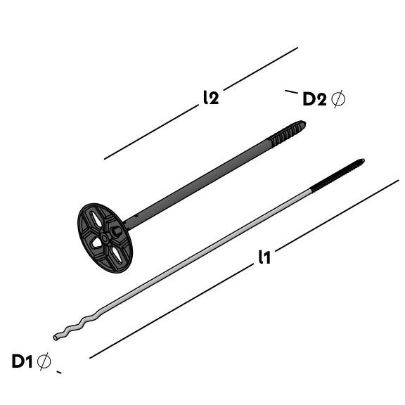 UNI Flexdübel System bestehend aus einem Drahtanker mit Einschlaggewinde und Welle und einem UNI Flexdübel. Zur Verbindung einer Hintermauerschale aus Porenbeton, Kalksandstein oder Beton mittels Dübel und einer Vormauerschale in Normalmörtel. Geeignet für alle gänigen Dämmstoffe. Mit allgem. Bauartgenehmigung.