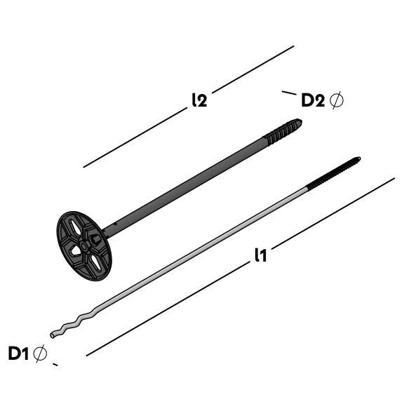 UNI Flexdübel System bestehend aus einem Drahtanker mit Einschlaggewinde und Welle und einem UNI Flexdübel. Zur Verbindung einer Hintermauerschale aus Porenbeton, Kalksandstein oder Beton mittels Dübel und einer Vormauerschale in Normalmörtel. Geeignet für alle gänigen Dämmstoffe. Mit allgem. Bauartgenehmigung.