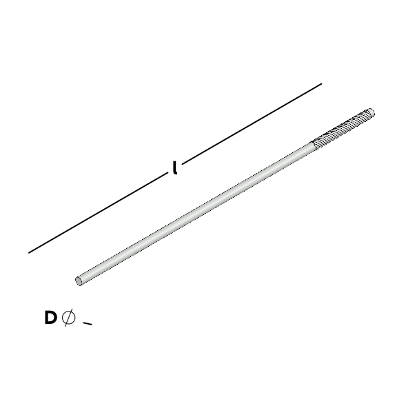 Drahtanker mit Einschlaggewinde, ohne Welle zur Verbindung einer Hintermauerschale mittels Dübel und einer Vormauerschale in Normalmörtel . Der Drahtanker muss nachträglich abgebogen werden.
