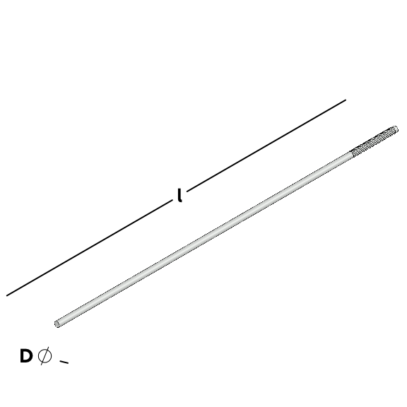 Drahtanker mit Einschlaggewinde, ohne Welle zur Verbindung einer Hintermauerschale mittels Dübel und einer Vormauerschale in Normalmörtel . Der Drahtanker muss nachträglich abgebogen werden.