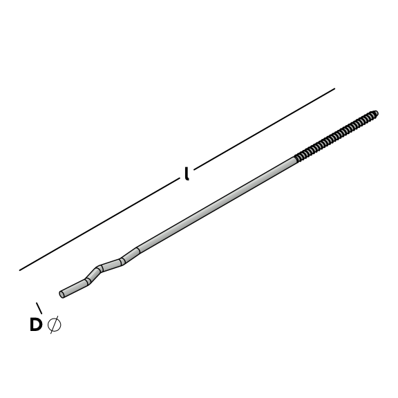 Drahtanker mit einseitigem Holzgewinde und Welle zur Verbindung einer Hintermauerschale mittels Dübel und einer Vormauerschale in Normalmörtel . In Verbindung mit Perfodübel blau