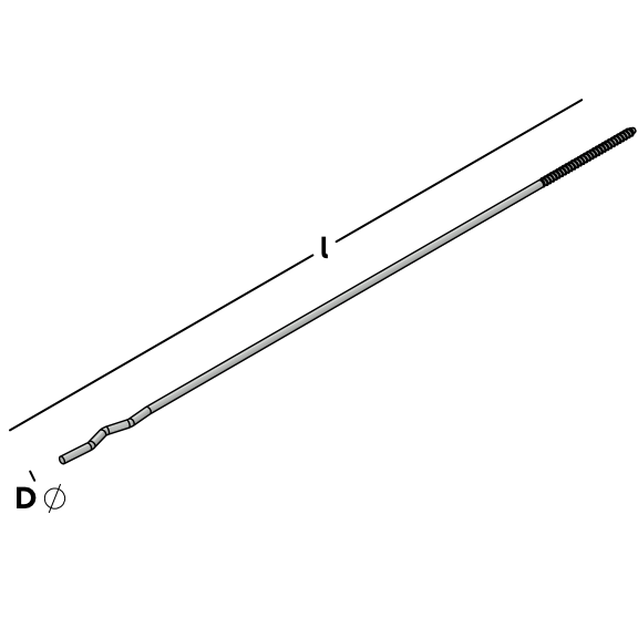 Drahtanker mit einseitigem Holzgewinde und Welle zur Verbindung einer Hintermauerschale mittels Dübel und einer Vormauerschale in Normalmörtel . In Verbindung mit Perfodübel blau