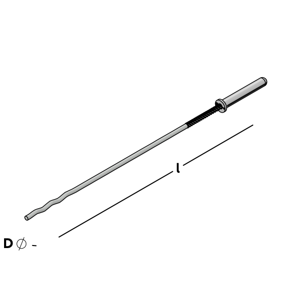 Drahtanker mit Einschlaggewinde und Welle inkl. vormontiertem Dübel, zur Verbindung einer Hintermauerschale mittels Dübel und einer Vormauerschale in Normalmörtel. Mit allgem. Bauartgenehmigung.