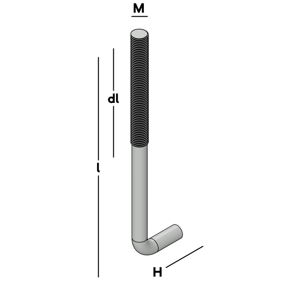 Die Hakenschraube dient zur Verankerung eines Holzbalkens an eine tragende Wand. Die Hakenschraube ist an einem Ende mit einem metrischen Gewinde versehen und das andere Ende ist rechtwinklig gebogen.