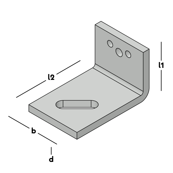 Heavy corner anchor with the diagonal slotted hole that is primarily used for bottom lintel mounting of window frames. The corner anchor has a diagonal slotted hole that allows for easy positioning.