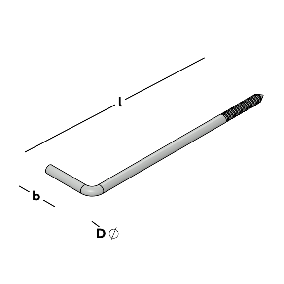L-shaped anchor with wood thread on the long side for screwing into the (set) frame. The other side has a right-angled turned part that can be bricked into the ribbon joint of the internal cavity wall.