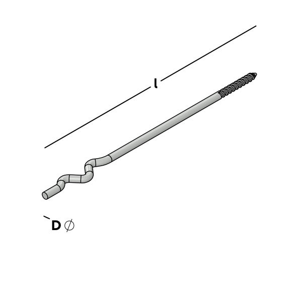 Anchor rod with wood thread on one side for screwing into the (set) frame. The other side has a corrugated profile that can be bricked into the ribbon joint of the internal cavity wall.