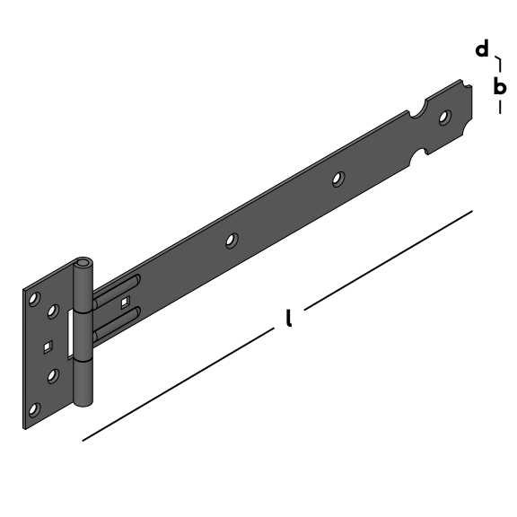 Hinge with an extended blade on one side. Suitable for gates, shutters and doors.