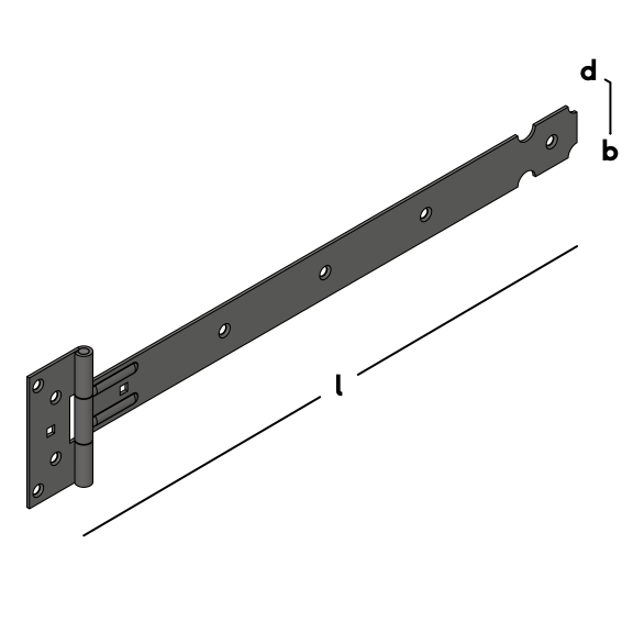 Hinge with an extended blade on one side. Suitable for gates, shutters and doors.