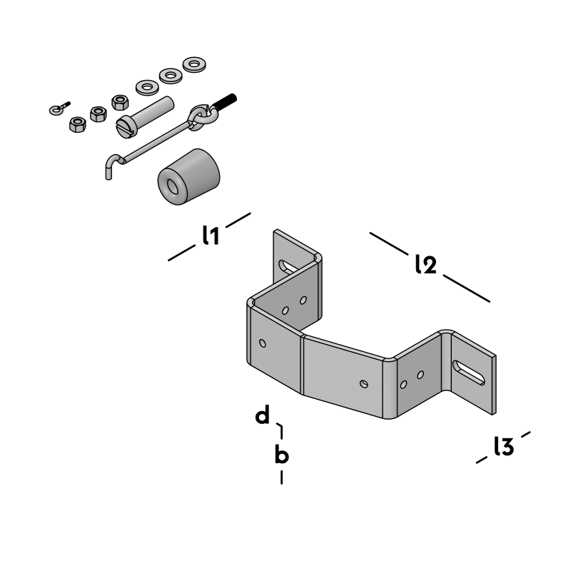 Door catch, small model. Suitable for mounting on the outside wall to catch an outward-swinging door. Includes door buffer and wind hook.