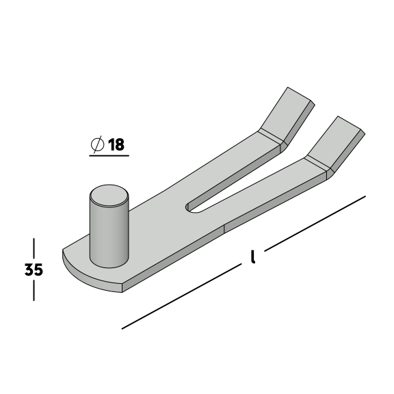 Pin Ø 18mm fitted with a plate with clips for bricklaying into a half-brick wall. For use in combination with a thumb handle.