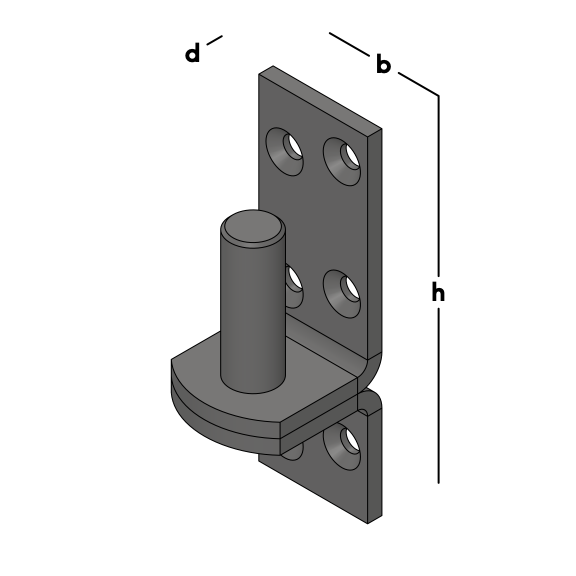 Pin Ø 16mm fitted with a plate with clips for brickwork in a stone wall. For use in combination with a thumb handle.