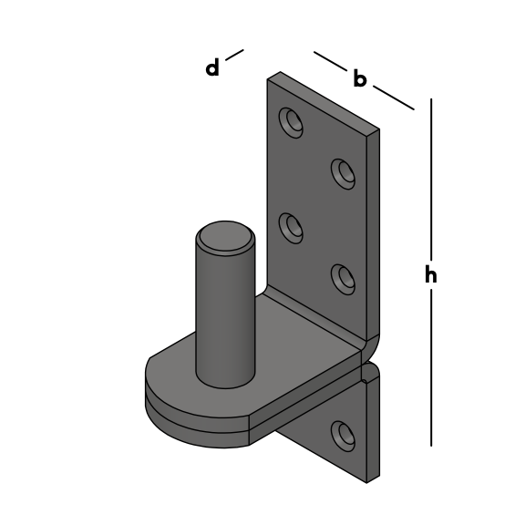 Pin Ø 16mm fitted with a backplate with screw holes. With extra distance between the pin and the plate for use in a situation with a recessed negge. For use in combination with a thumb catch.