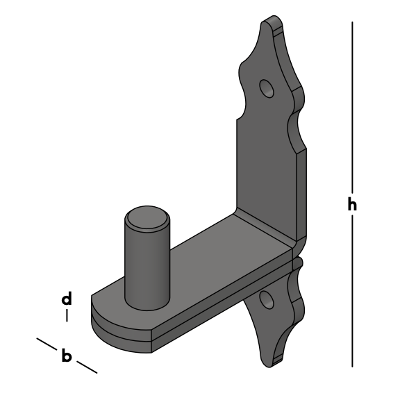 Pin Ø 16mm fitted with a Rustic-shaped backplate with screw holes. With extra distance between the pin and the plate for use in a situation with a recessed negge. For use in combination with a thumb handle.