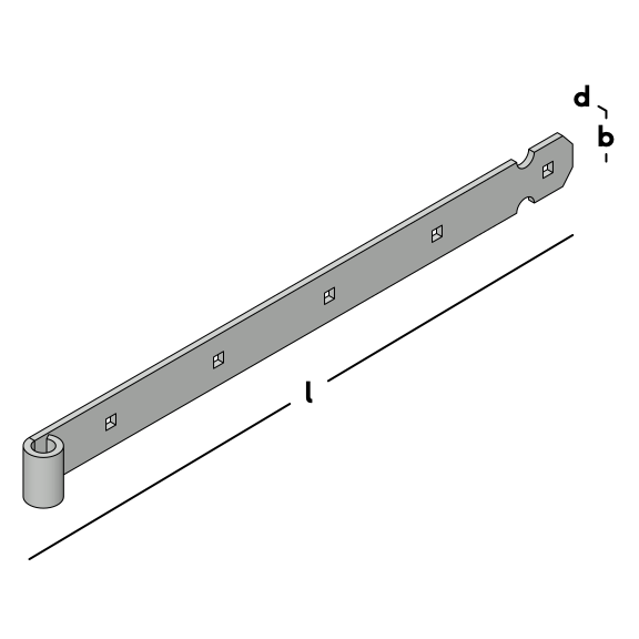 Handle for hinged fastening of gates and doors. Fitted with square (carriage bolt) holes. For use in combination with a Ø 16 mm thumb.