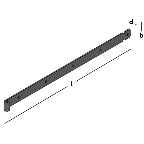 Handle for hinged fastening of gates and doors. Fitted with square (carriage bolt) holes. For use in combination with a Ø 16 mm thumb.