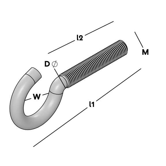 Threaded cup hook for creating powerful attachment points. Designed to be used with plugs featuring internal threading for secure fastening. Available in various sizes.