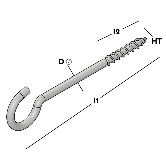 Self-tapping cup hook with small hook for creating strong attachment points. Suitable for both wall and ceiling applications. Available in various sizes.