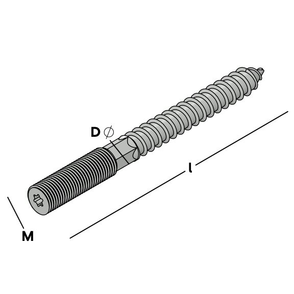 Hanger bolt with hegagon surface and with torx drive for easy and precise fixing. Available in several sizes.