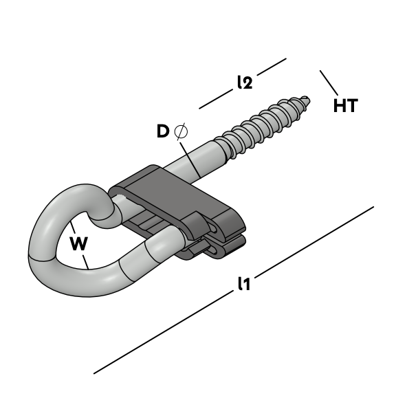Self-tapping swing hook including safety clip. Can be directly screwed into wooden beams.