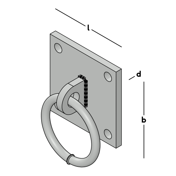 Ring on a backplate with eye and fixing holes.