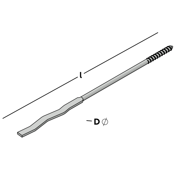Cavity anchor with wood thread on one side. Applicable for timber frame construction walls or in combination with a collar plug, UNI-flex plug or UNI-perfo plug for mounting in sand-lime brick, concrete and brick. The other end has a flat-pressed corrugated profile, which is suitable for thin joint strips.