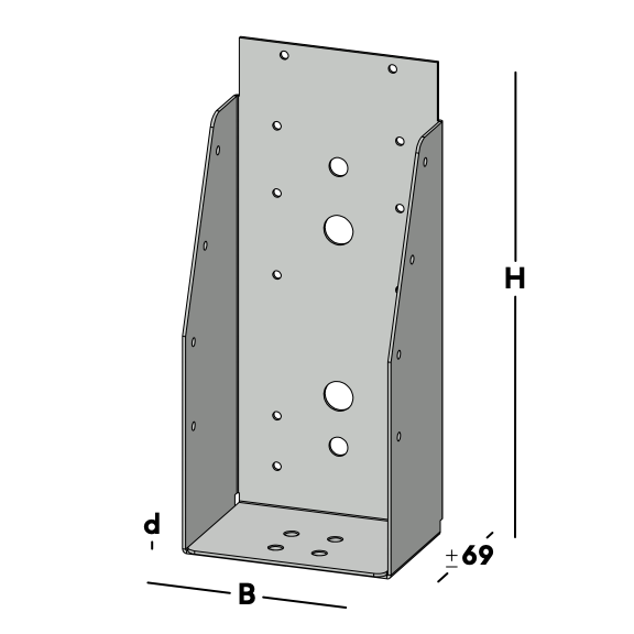 Beam carrier for connecting joists directly to a wall. The beam carrier is fixed via the holes in the back. A beam is then inserted, which can be fixed via the holes in the side of the beam carrier.
