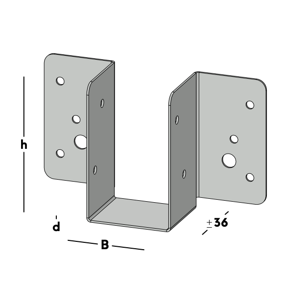 Light beam carrier for connecting a wooden batten crosswise to a wall, edge board or (main) beam. Available for various wood sizes.