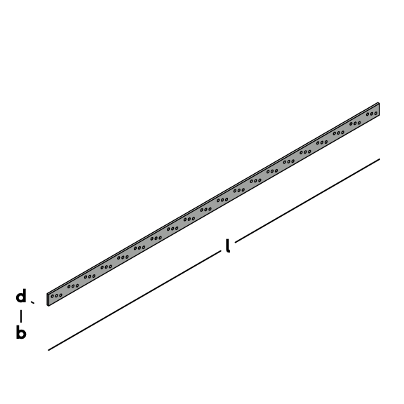 Heavy mounting strip with repetitive hole pattern to connect wooden parts.