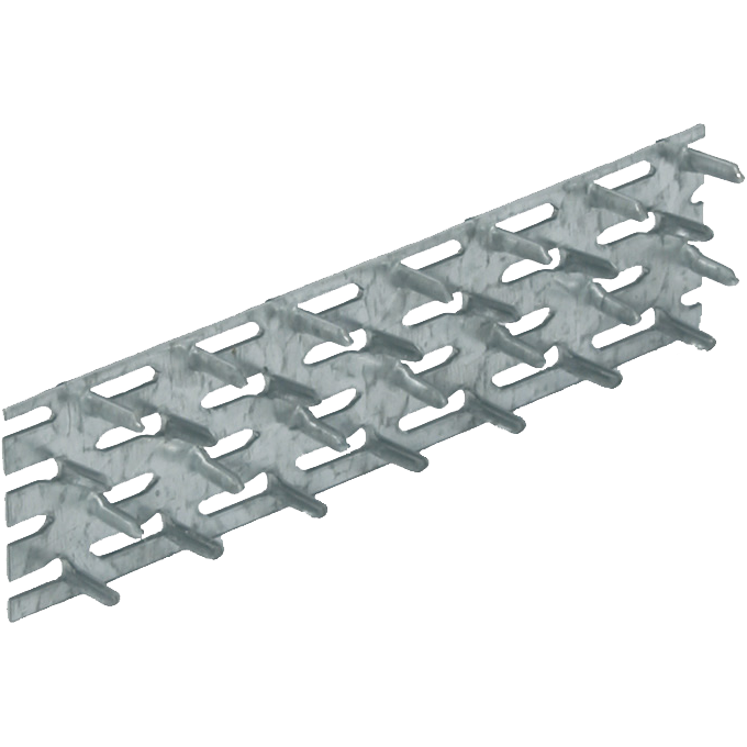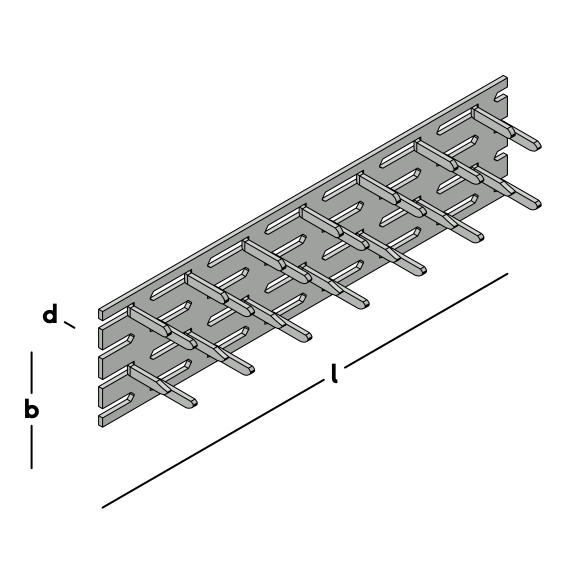 The rectangular coupling plate has one converted side and a regular pattern of reinforcing grooves and nail holes. Suitable for nailing thicker or wider wood parts together flush.