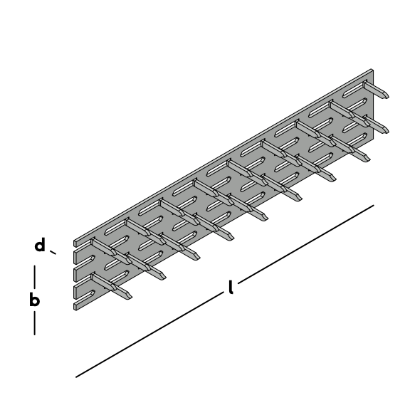 The rectangular coupling plate has one converted side and a regular pattern of reinforcing grooves and nail holes. Suitable for nailing thicker or wider wood parts together flush.