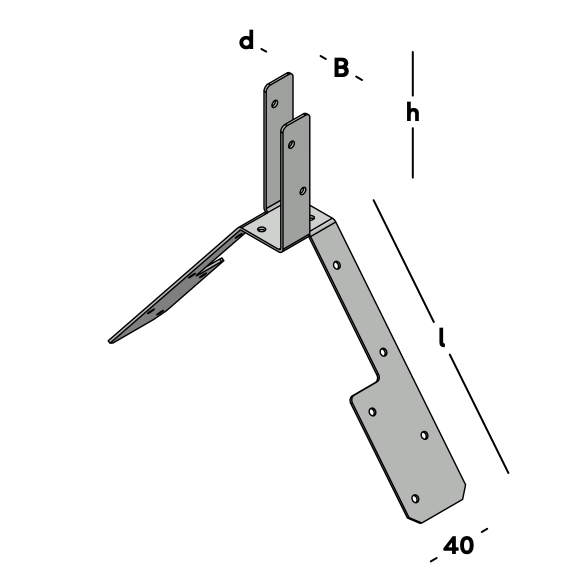 A bracket for mounting the top beam (rider) on the ridge of a pitched roof.
