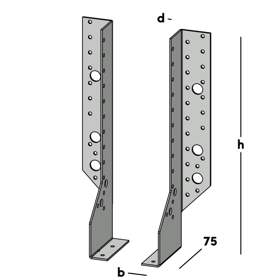 Beam carrier in two parts with side flange, for fixing joists against a wall or against another wooden beam. Because the carrier consists of two parts, it can be used for all kinds of (non-standard) wood sizes.