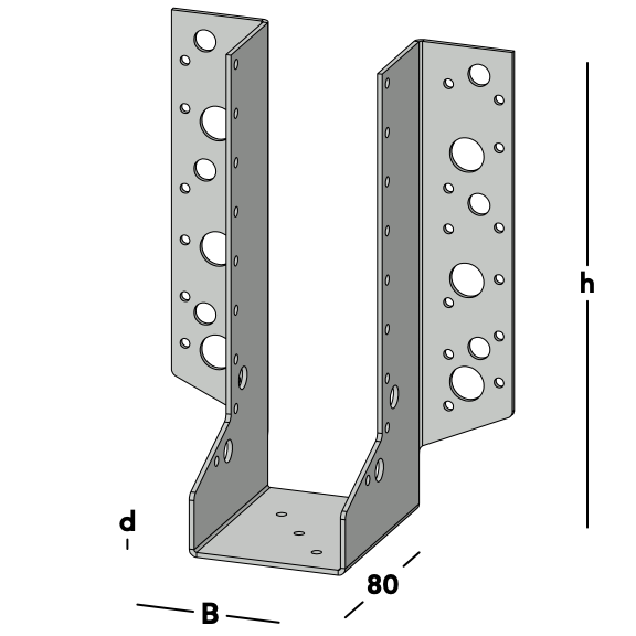 Beam carrier with side flanges, for fixing joists against a wall or against another wooden beam. This beam carrier is also used for making ravelings in floors and roofs. Available for the common head sizes of both planed and unplaned beams.