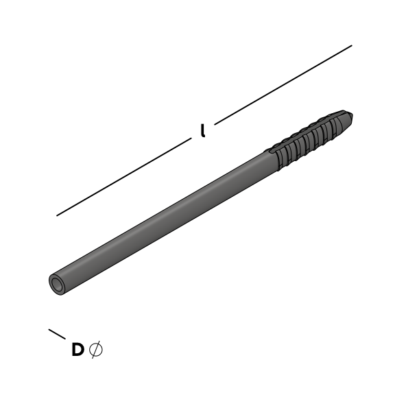 Bouchon long Ø 8mm qui se place dans le battant intérieur d'un mur creux existant. Le bouchon est utilisé en combinaison avec un ancrage de cavité UNI collé avec du mortier chimique dans le joint du mur extérieur.