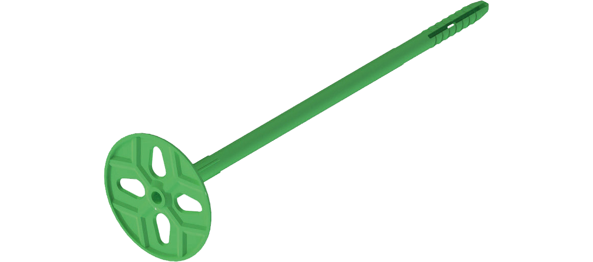 Le bouchon d'isolation vert est destiné à la fixation d'une isolation creuse dure et souple combiné à des chevilles creuses à percussion UNI Ø 5 mm dans un mur intérieur en béton, en briques silico-calcaires ou en briques pleines.