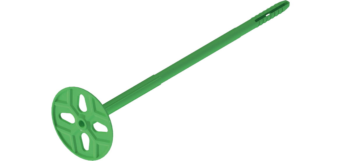 Le bouchon d'isolation vert est destiné à la fixation d'une isolation creuse dure et souple combiné à des chevilles creuses à percussion UNI Ø 5 mm dans un mur intérieur en béton, en briques silico-calcaires ou en briques pleines.