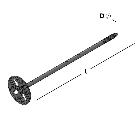 Le bouchon d'isolation noir est destiné à la fixation d'une isolation dure ou souple dans un mur intérieur en béton, en briques silico-calcaires ou en briques pleines, combiné à des chevilles à percussion UNI de Ø 4 mm.