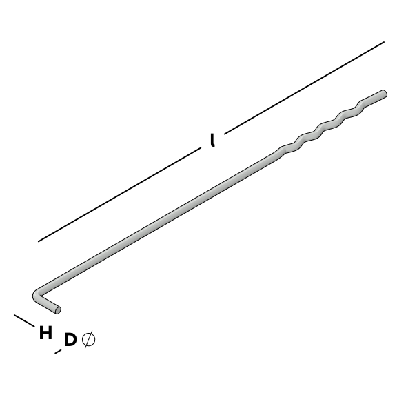 Ancrage traditionnel à cavité en fil en forme de L pour le mur intérieur en béton et en profil ondulé pour le mur extérieur en béton.