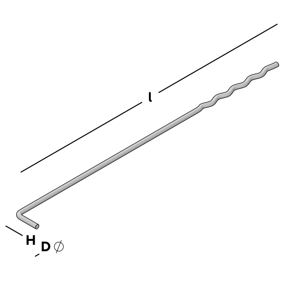 Ancrage traditionnel à cavité en fil en forme de L pour le mur intérieur en béton et en profil ondulé pour le mur extérieur en béton.